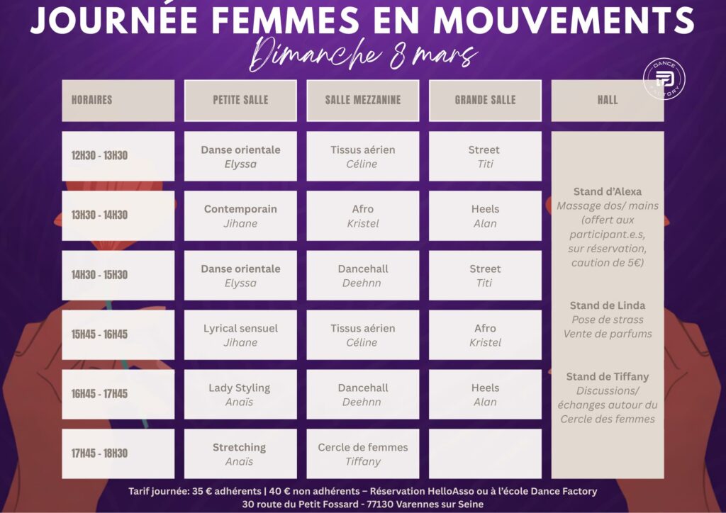 À l’occasion du 8 mars, Dance Factory vous invite à une après-midi de stages ouverte à toutes et tous.